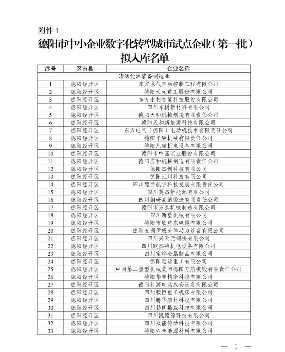 为进一步支持和引导我市工业企业加快实施智能化改造数字化转型,促进制造业高质为深入贯彻落实党中央、国务院关于支持中小企业创新发展、加快中小企业数字化转型系列决策部署,扎实推进中小企业数字化转型城市试点工作,按照《德阳市中小企业数字化转型城市试点实施方案》要求,经企业自主申报、区县初审等程序,现将我市中小企业数字化转型城市试点企业(第一批)拟入库名单予以公示。