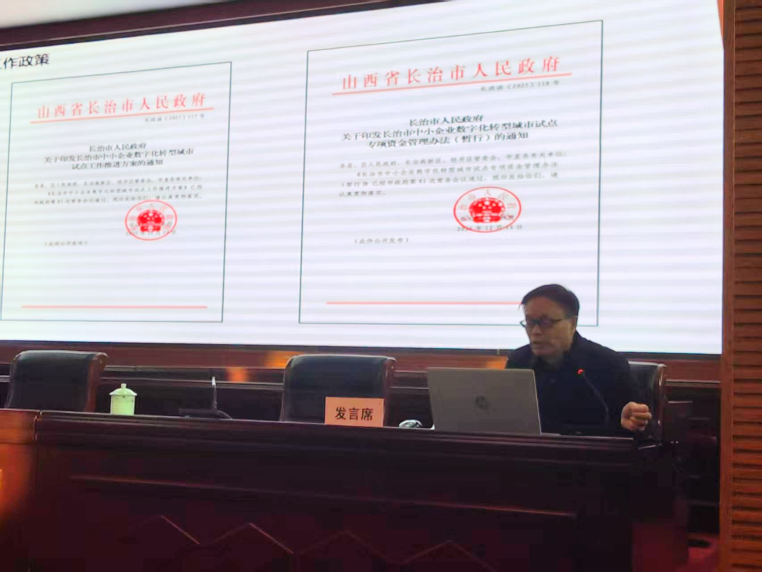 在政策解读环节,专家陈学峰围绕《长治市中小企业数字化转型政策解析》进行了系统讲解,详细介绍了当前市、区两级在支持企业数字化改造方面的具体举措和申报路径,为企业厘清政策红利、把握转型方向提供了清晰指引。