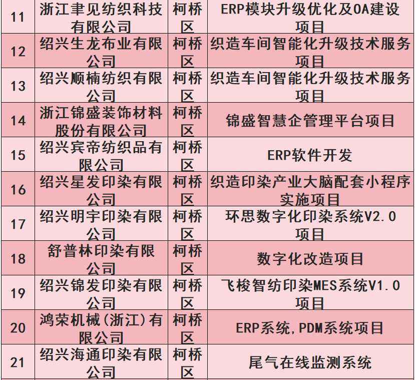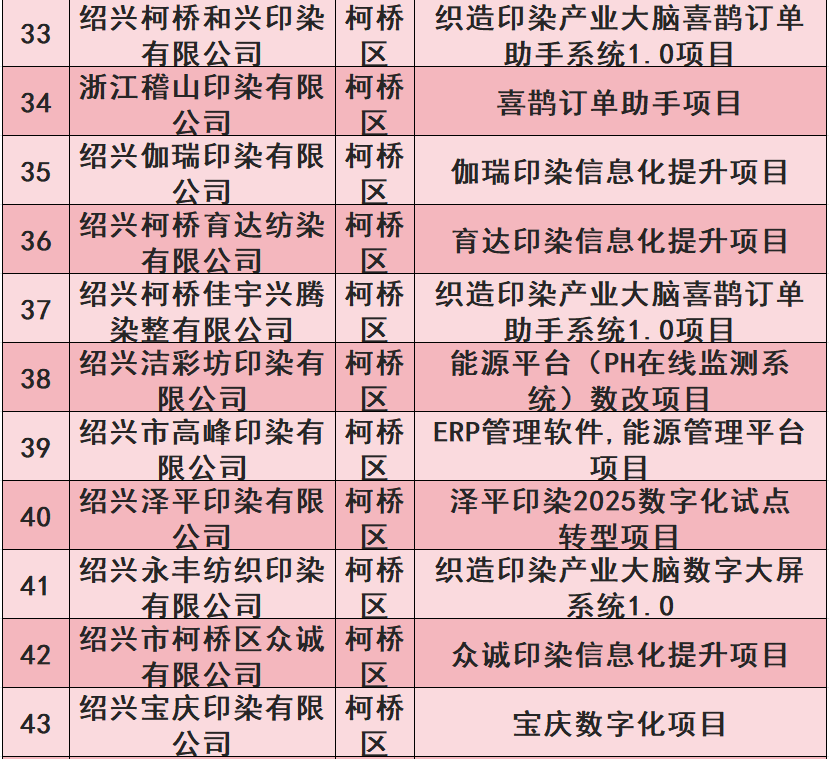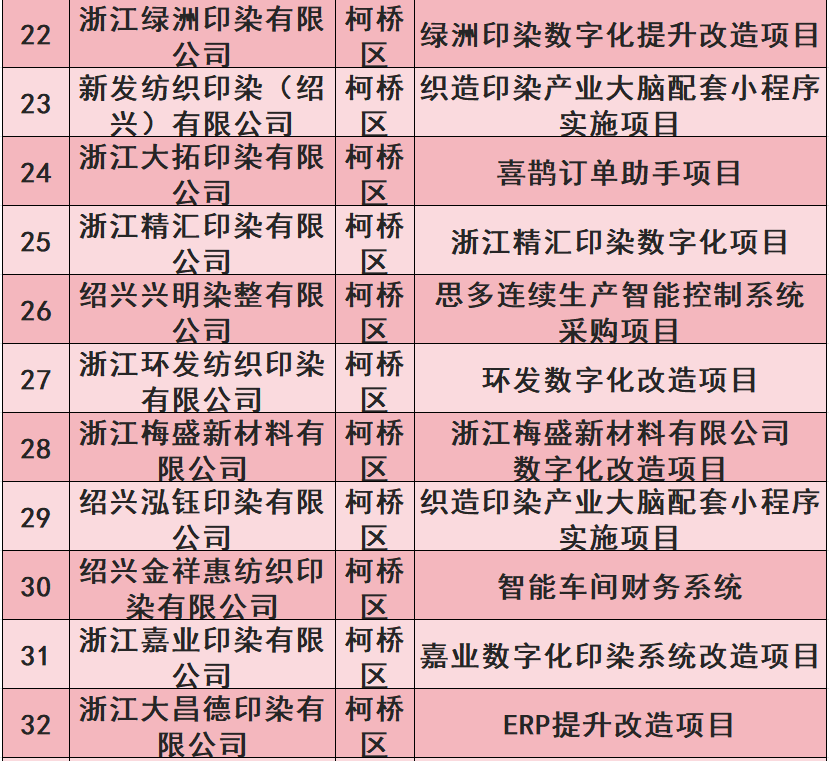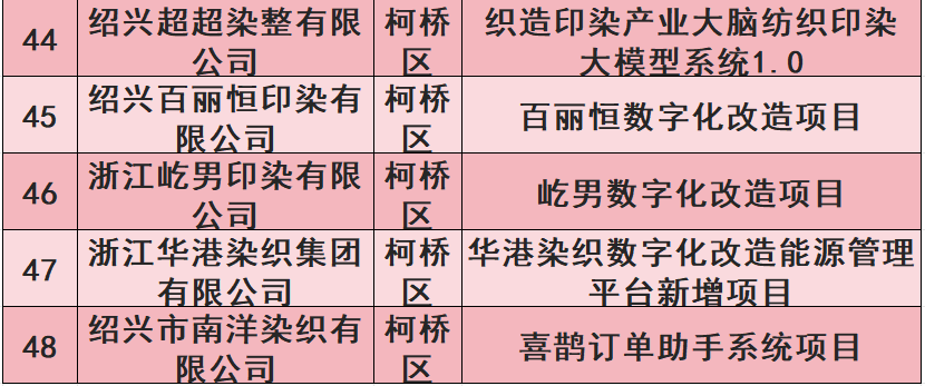【关注】我市48个纺织印染类项目上榜绍兴市中小企业数字化转型城市试点企业数改项目(第五批)公示名单