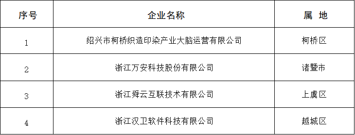 绍兴市中小企业“链式”数字化转型典型案例入围名单